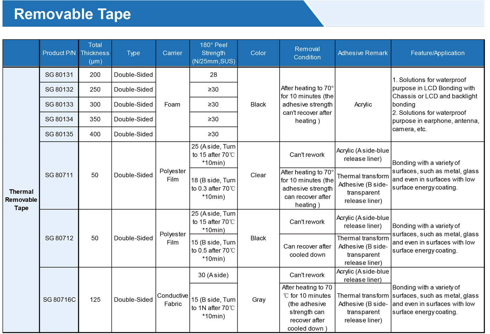 熱可拆卸膠帶(可返工)